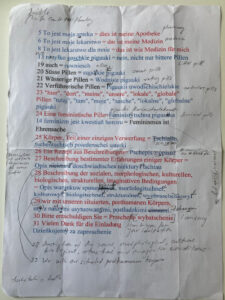 I researched the lettrist and ultra-lettrist poetry by focusing on their performance practices, using my „Audioscoring“ method. Audioscoring, as the name implies, involves listening to a score instead of reading it. I examined the experimental voices by learning from them, understanding how these voices are created, and documenting my observations in a studio logbook as I recreated what I heard. Tonight, I will perform ‚Postscriptum‘ as an audioscore, a solo voice piece by Gil Wolman created in 1951. ‚Postscriptum‘ is three minutes long. In addition to the piece, you will hear breath and articulatory elements in line with Wolman‘s theory of ‚Megapneumie,‘ the theory of the ‚Big Breath‘.